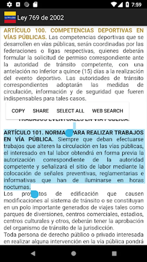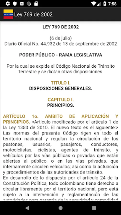 The rules of this Code govern throughout the national territory and regulate the movement of pedestrians, users, passengers, drivers, motorcyclists, cyclists, traffic agents, and vehicles through public or private roads that are open to the public, or in the private roads, which internally circulate vehicles; as well as the action and procedures of the transit authorities.