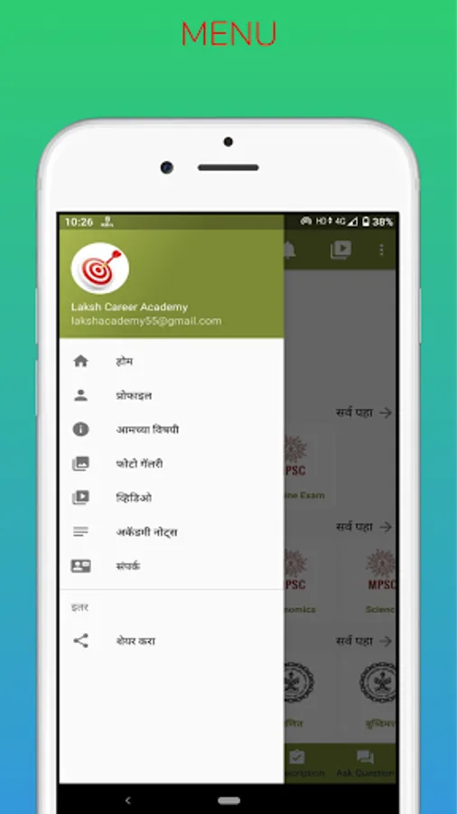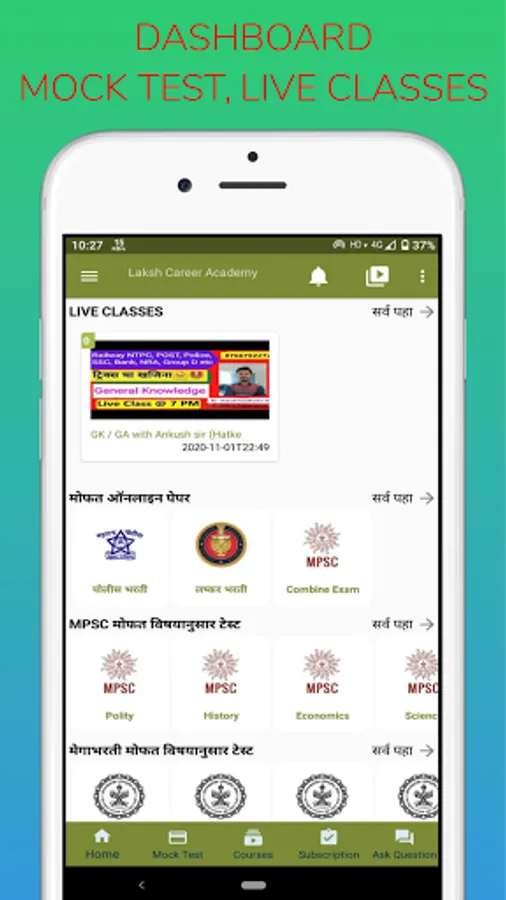 Laksh Career Academy (LCA) is one of the Best Competitive Study App in Marathi. It is also a free MPSC, Police, Army study material App in Marathi.