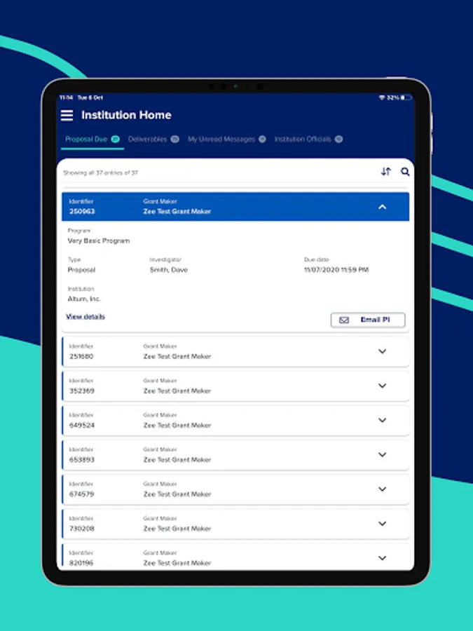 This App is an alternative interface to an existing platform called ProposalCentral, owned and operated by Altum, Inc. The App only works for a subset of users on ProposalCentral who have an access role of "Institution Official" and are subscribed, as an institution, to ProposalCentral Insights for Institutions. Once that subscription is active, the institution officials can use the App with their ProposalCentral credentials to access information that they would have accessed from the website https://proposalcentral.com