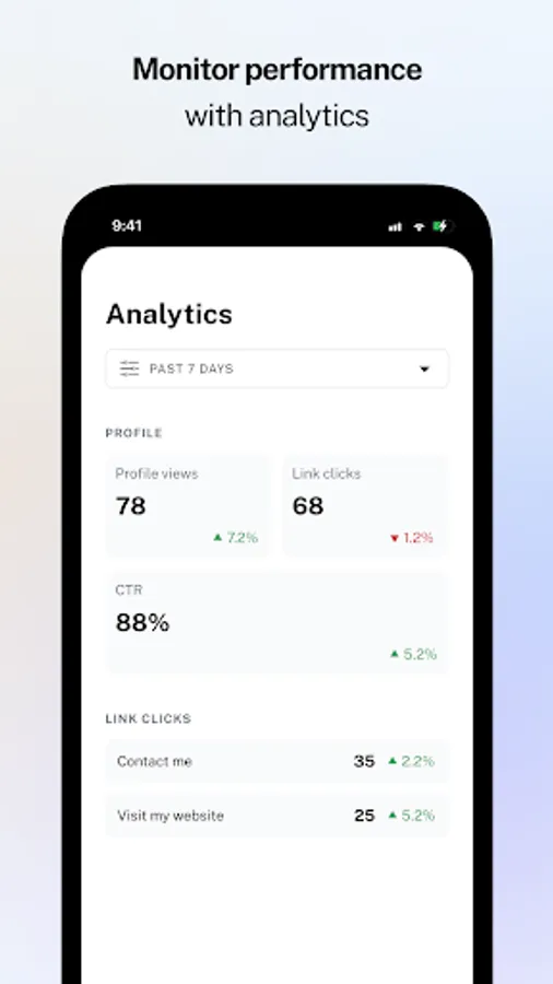 - Quick Setup: Create your profile in minutes. Add custom links, choose colors, and pick from a range of layouts.