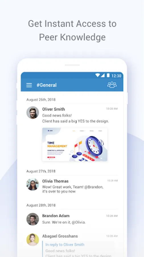 Turn employees into a learning-focused Q&A community. Set up Q&A discussions and improve your team’s learning and knowledge exchange. Here’s what the collaboration mobile app is capable of: