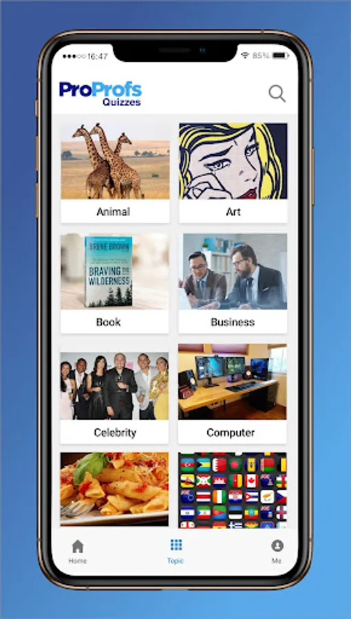 - Explore quizzes from a variety of topics of your choice such as art, education, business, books, exams etc