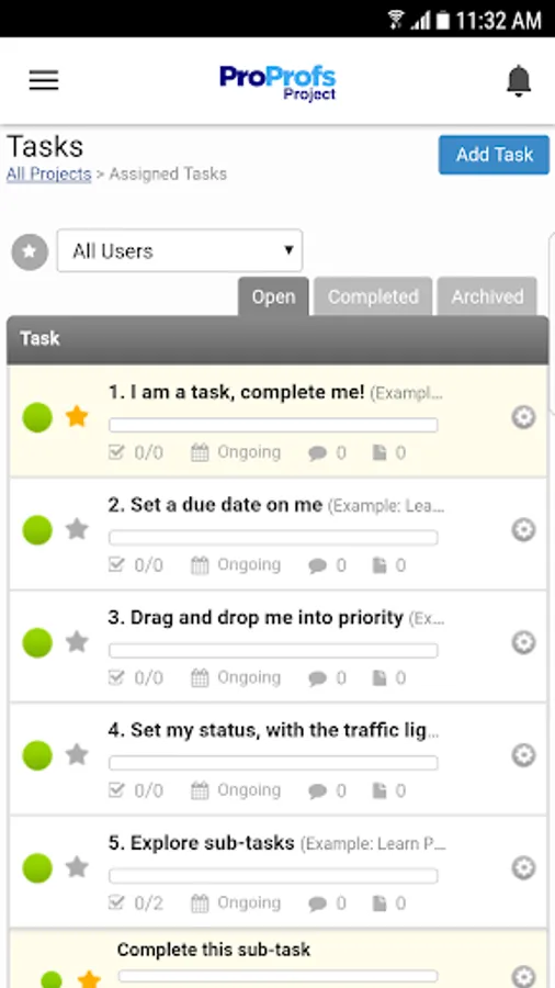 The ProProfs Project Android app takes the best of our web version and allows you to manage your projects on the move. Track progress, delegate tasks, access reports and much more even while you're away from your office.