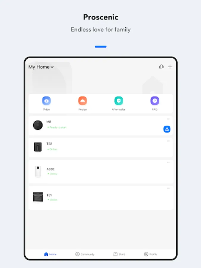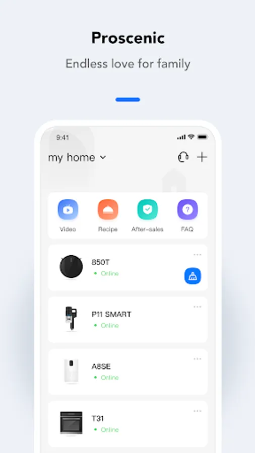 "The Proscenic App is a mobile phone application that connects Proscenic smart products. You can control the functions of the product and monitor your product in real-time through the application. Here, you can control the product anytime and anywhere, and you can also streamline communication between smart devices. Intercommunication makes the product more portable and smart during use.
