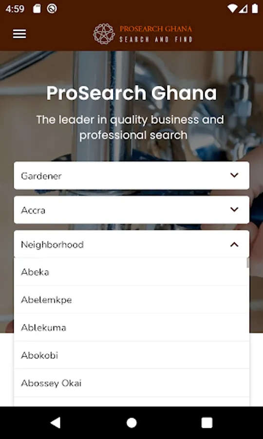 Prosearch Ghana is the leading professional search web portal in Ghana that helps individuals find the best local service providers / businesses, like roofers, plumbers, handymen, masons, electricians, mechanics, doctors and dentists, home helpers, math teachers. And that's just the short list. We strive to collect ratings and reviews on all service providers on our platform. The people who register are just like you— real folks looking for a way to find trustworthy companies that perform high-quality work.