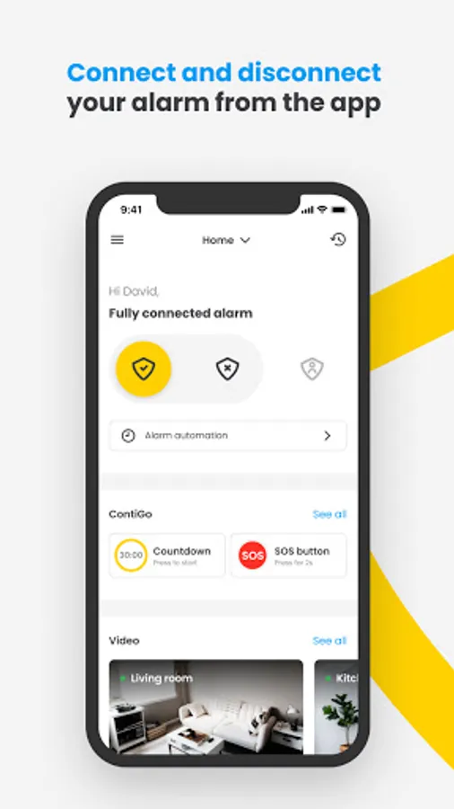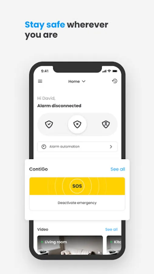 - View live videos and access the recordings for both cloud video and CCTV (if you have available these services).