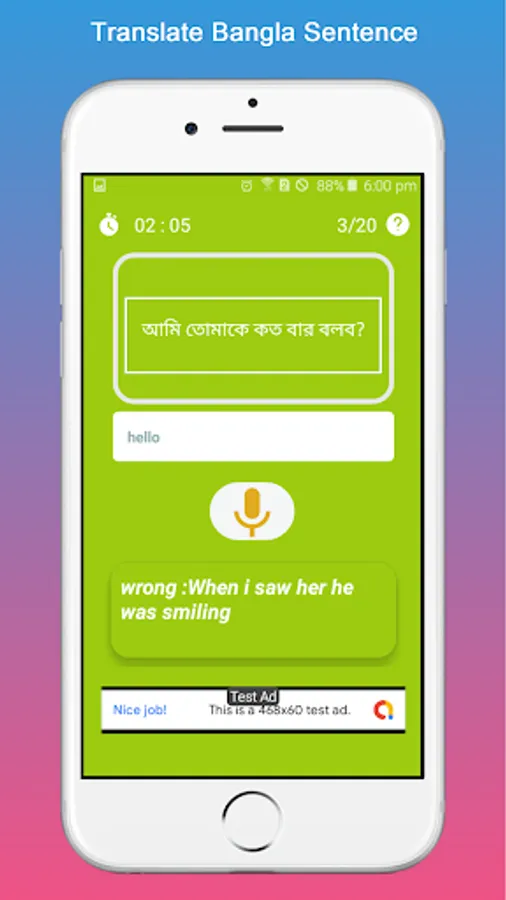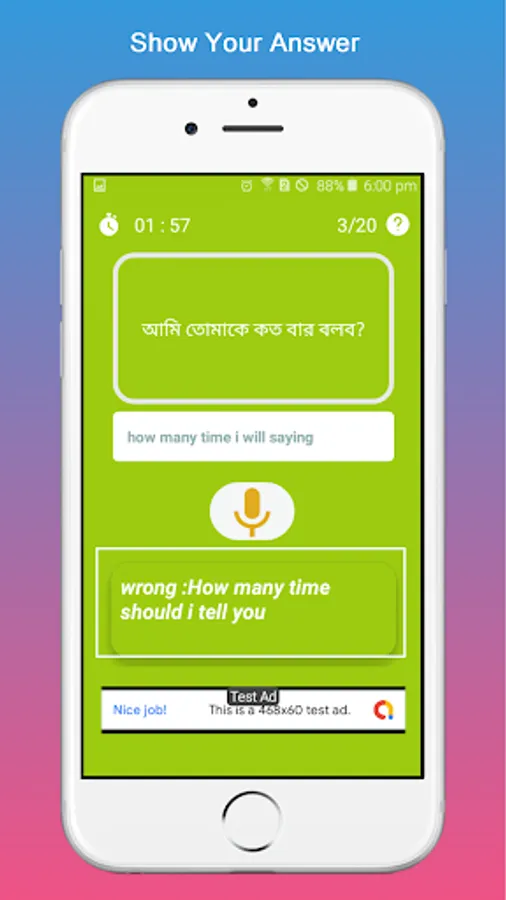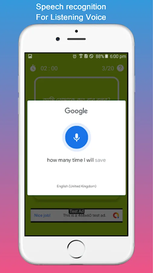 As a result user practice speaking English long time. User think that he use English quiz app.