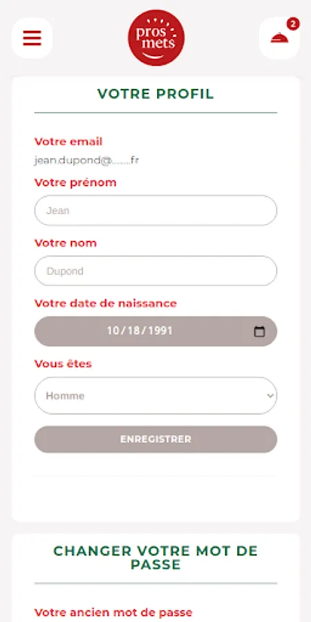 Also, it is now possible for an individual to complete a profile sheet in which he can mention his food allergies or intolerances, his lifestyle (omnivorous, vegetarian or vegan). Depending on this information, its geolocation or the city indicated, we offer a list of dishes that can be made by the referenced local restaurants. The consumer can then consult the exhaustive list of ingredients for each dish to ensure that they do not contain undesirable ingredients (where possible, we indicate the origin of the ingredients). He can book or pay for his meal online after specifying when he will come to collect it. The invoice is sent by email upon receipt of payment, followed by the notice of availability when the time comes.