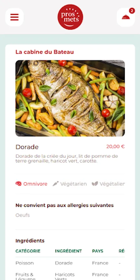 The goal of PROsMETs is ultimately to offer dishes based on the nutritional needs and expectations of diners. The application will take into account a greater number of food allergies and intolerances, pathology such as diabetes, possible states of undernutrition, a lifestyle of new dietary practices such as vegetarianism but also the physical characteristics of the guest.