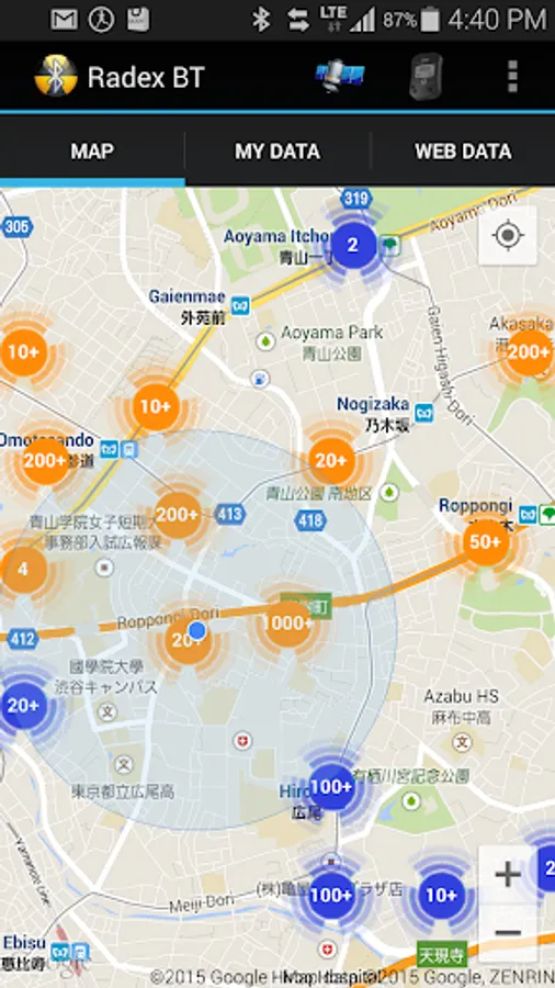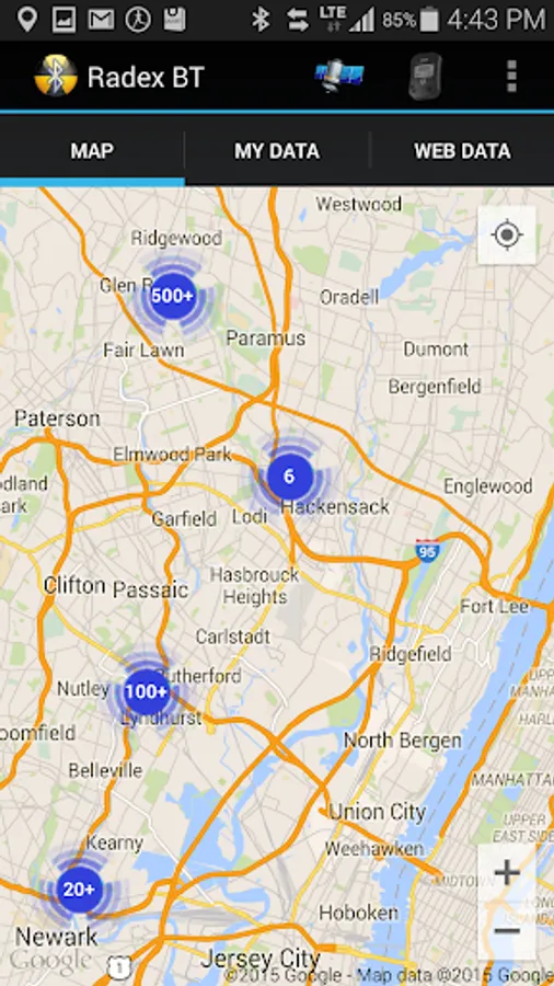RadexRead retrieves realtime radiation values from geiger counter and displays these values on the map.