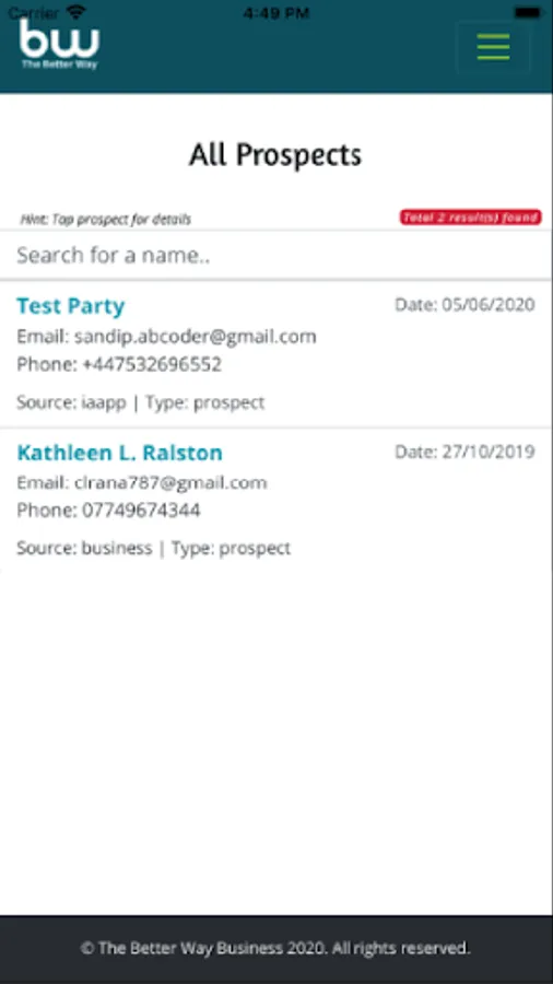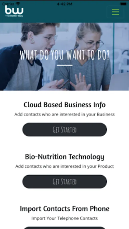 The Better Way app has been developed exclusively for team members to allow them to reach out to new prospects and share content on social marketing platforms. The process initiates an automated sequence of personalized messages in email, SMS and WhatsApp. Users can track and interact with their prospects while receiving notifications when a contact becomes a "hot" prospect. Other functions include the ability to organize online parties and manage daily tasks