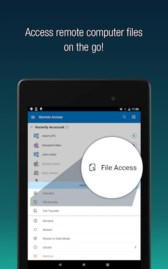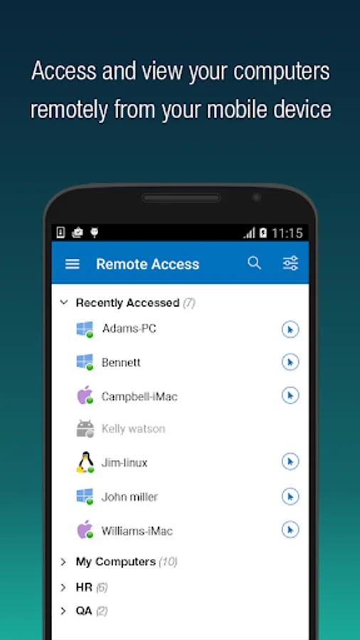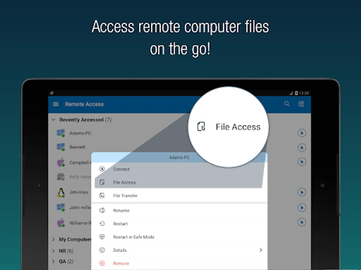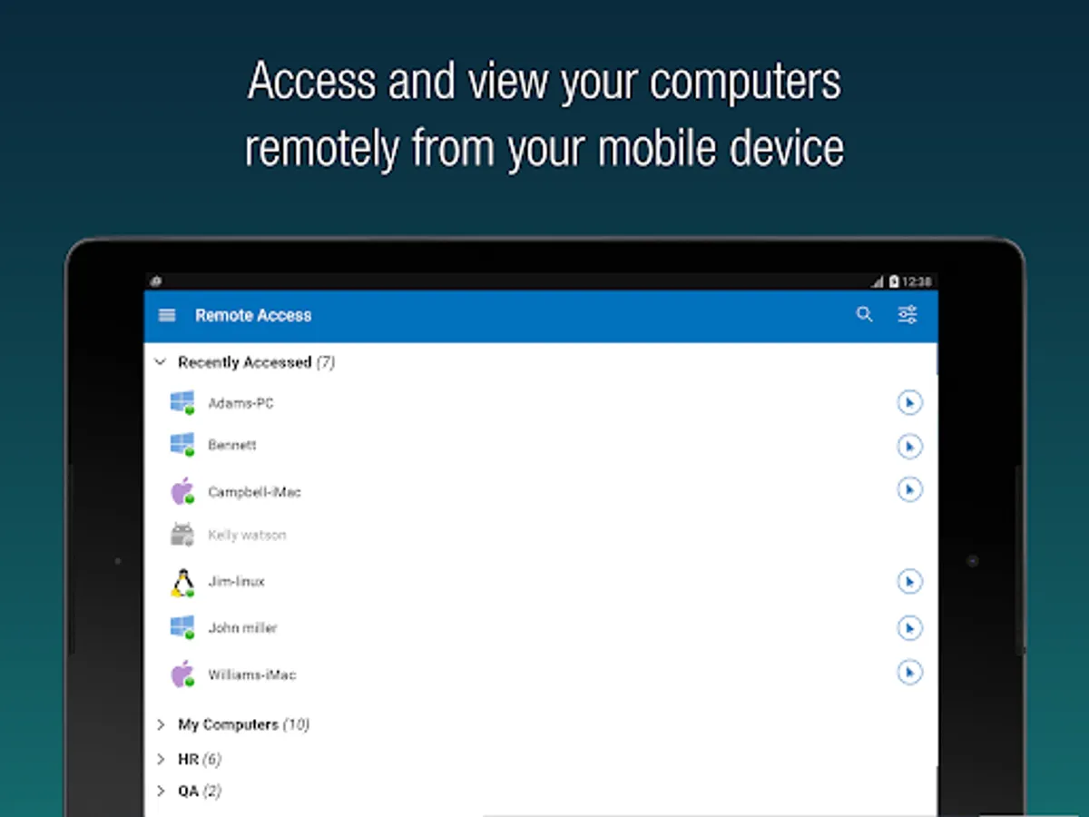 Install the RemotePC app on your mobile devices and access your computer remotely from anywhere.