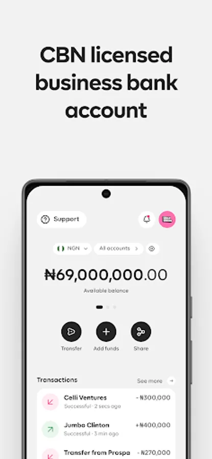 Prospa is a fully CBN licensed and NDIC insured bank for serious businesses. With a Prospa bank account businesses can make payments, access loans, and manage vital business processes, all from a mobile app that’s fast and secure.