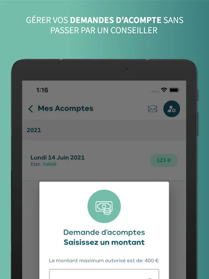 • Gérer vos demandes d'acompte en direct.