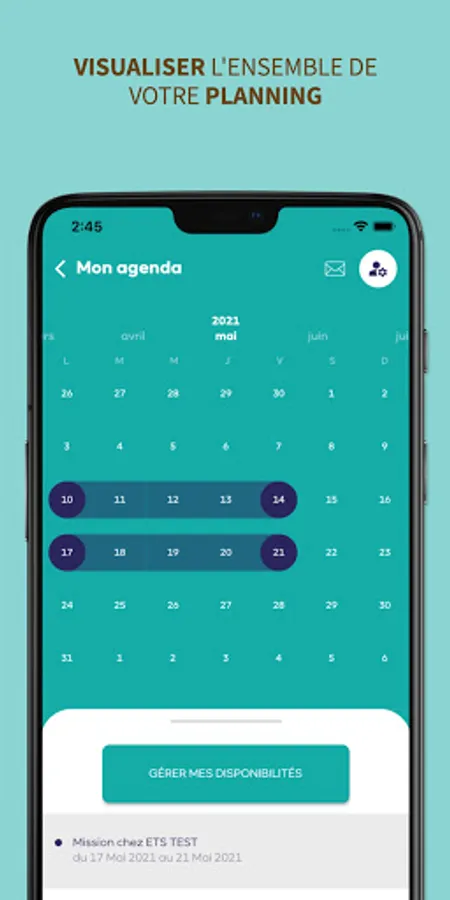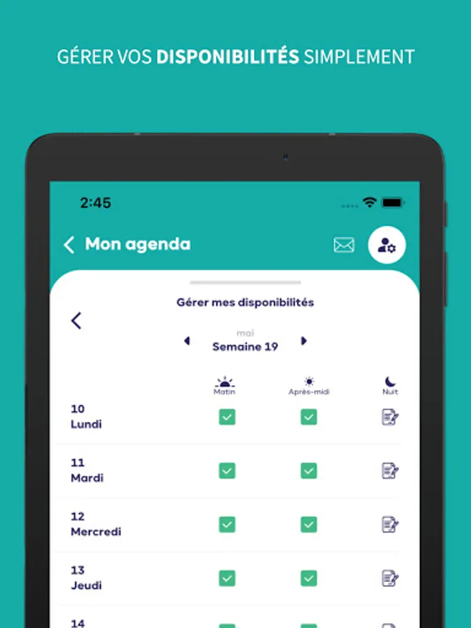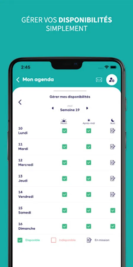 - Find all the missions entrusted to you in your schedule, indicate your availability or unavailability,