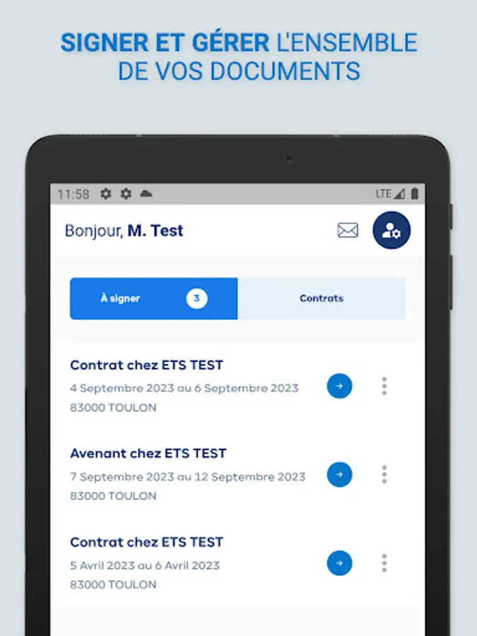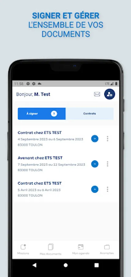 - Sign, manage your entire file (assignment contracts, your payslips, etc.)