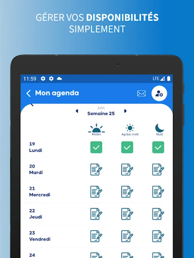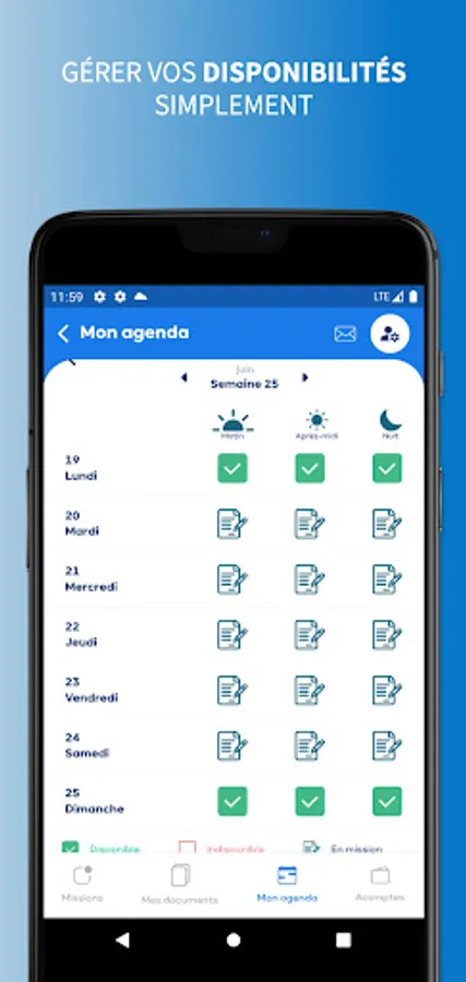 - Find all the missions entrusted to you in your schedule, indicate your availability or unavailability,