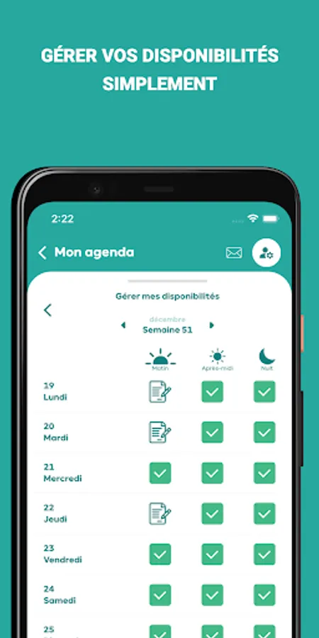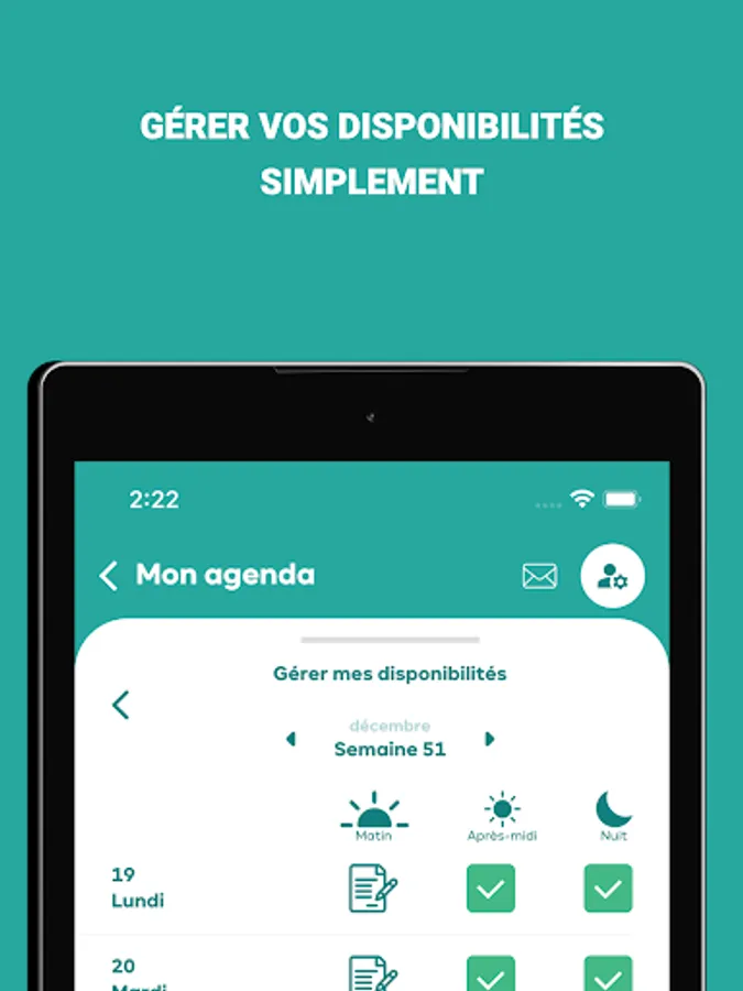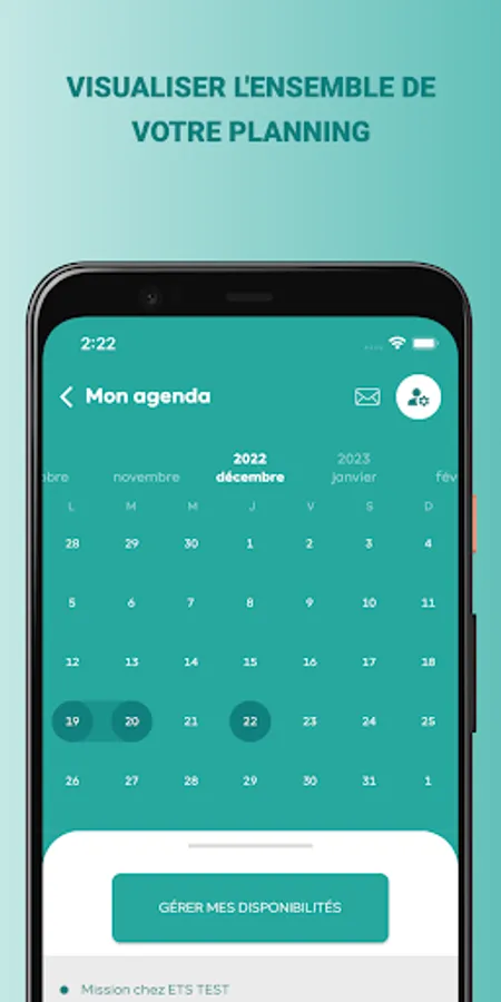 - Find all the missions entrusted to you in your schedule, indicate your availability or unavailability,