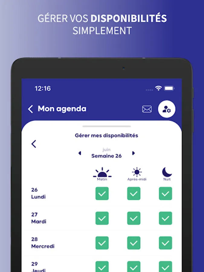 - Find all the missions entrusted to you in your schedule, indicate your availability or unavailability,