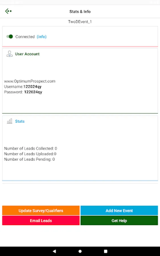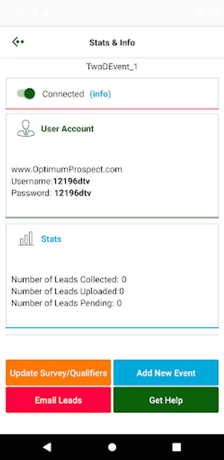 OptimumProspect, by Event Data Soft Inc, is a sales-lead collection tool developed with the Exhibitor in mind. Our easy-to-use main menu allows the exhibitor to quickly and easily scan the QR Code or Barcode printed on the conference name badges.
