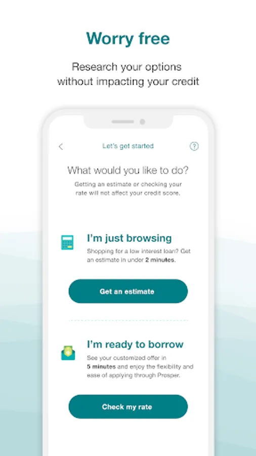 New to Prosper? Take two minutes to estimate your personal loan amount, interest rates, and monthly payments all without sharing your phone # or email. Like what you see? Submit your application in less than 5 minutes through the Prosper: Personal Loans App, and get ready for next-day funding(in as little as one business day if you meet required conditions). Access fixed rate, low interest personal loans from $2,000 to $50,000.