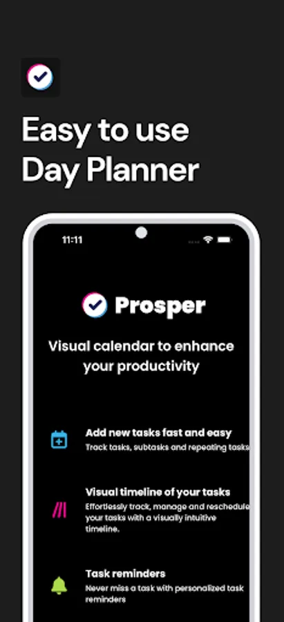 With Prosper, we've taken the essence of day planning and fused it with intuitive design and user experience. It's more than just a to-do app; it's a promise to yourself to make every day prosperous!