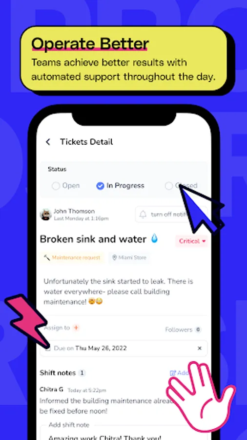 Prospr At Work helps companies and employees achieve greater efficiency, productivity and quality of life. Prospr provides a mini-suite of productivity tools: shift scheduling with real-time alerts, automatic schedule generation and day-of monitoring. Issue ticketing, a bulletin board and customizable knowledge center round out the toolkit.