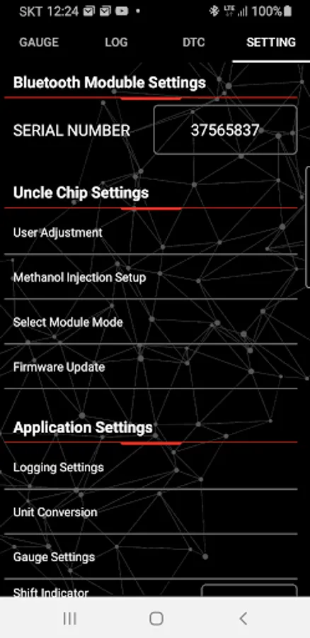 Using Bluetooth communication, control the METHAN KIT produced by PROSS, acquire vehicle status information, and display it on the screen