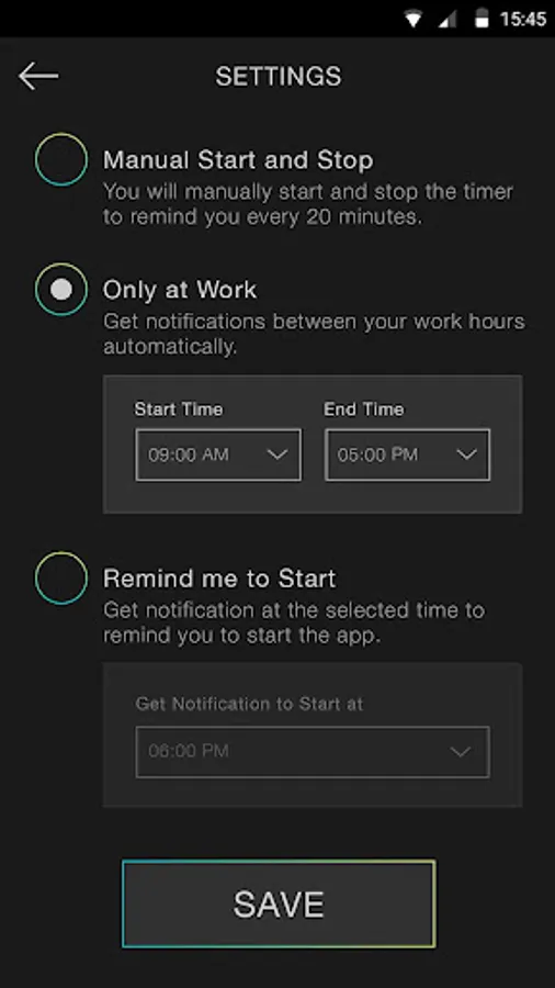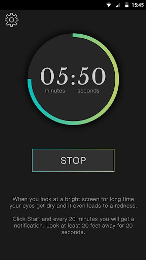 Eyecare 20 20 20 App is simple to use. Whenever you are going to start working on a computer, open the app and click Start. That's it. You can now close the app and it will keep sending you a notification every 20 minutes. Whenever you get that notification look away from your computer for about 20 seconds.