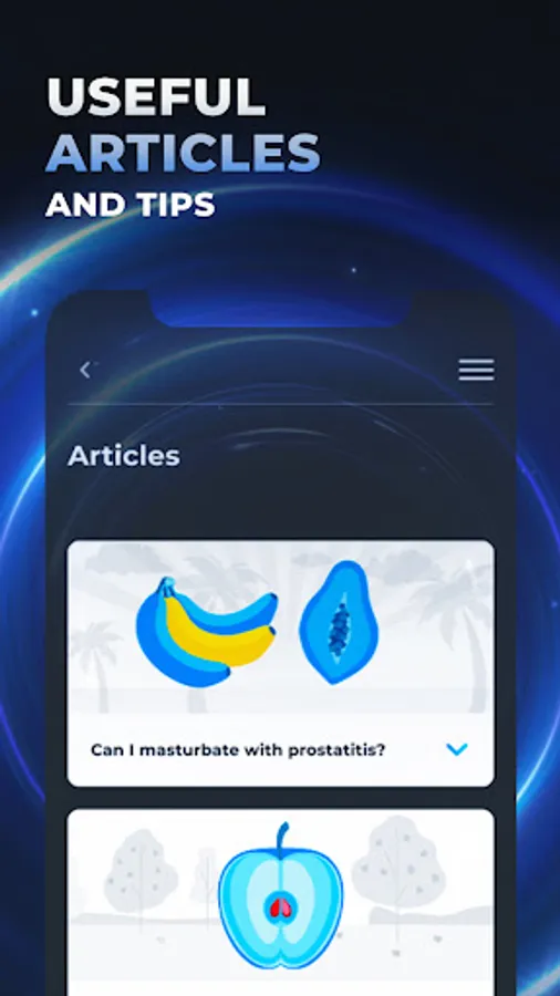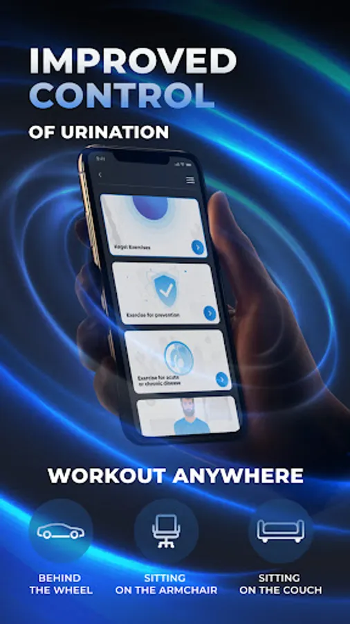 And you have everything you need for a successful start. After all, you have in your hands a universal assistant of every self-respecting man. Just open the Dr. Prost app and follow the simple instructions. Each exercise is accompanied by clear pictures shown in the form of animation. Click on "start" and than repeat the movements of the virtual personal trainer. If you are not successful, you can stop and carefully study each movement of the exercise. You can also fill out a questionnaire to help you track your progress and overall health.