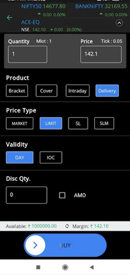 6. Scrip overview on single tap, give Equity, Futures and Options, Technical levels and buy and sale order window