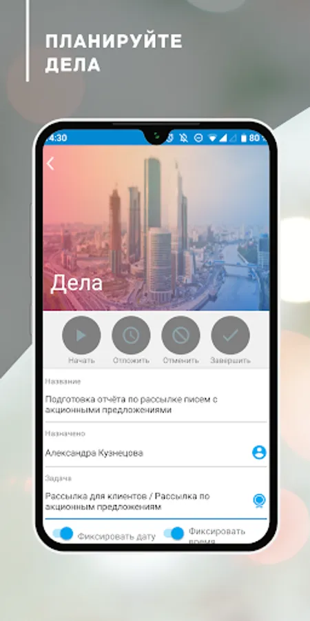 - Creation of cases and reminders about them, synchronization with Google Calendar;