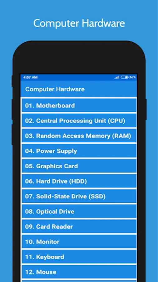 This app is useful for those who are starting to learn computer basics like what is Software, What is hardware etc.