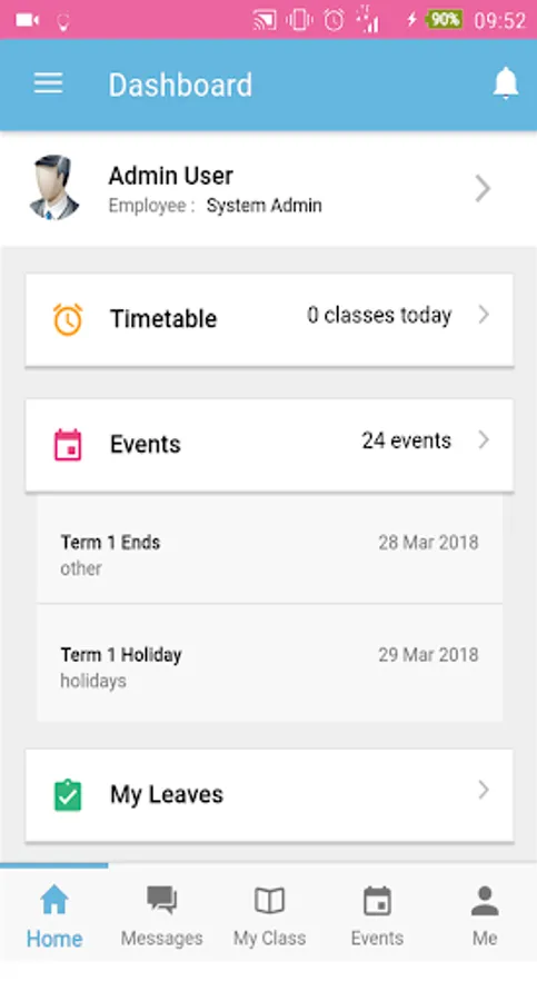 My Class : If you are a class teacher/tutor, you can mark attendance for your class, access student’s profiles, class time table, list of subjects and educators. This will make your day lighter we believe.