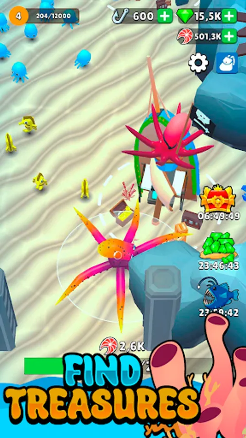 Idle Gameplay, Massive Rewards: Your octopus and its allies gather resources and fight even while you're offline. Dive back in to claim treasures from the deep and grow your empire stronger than ever!