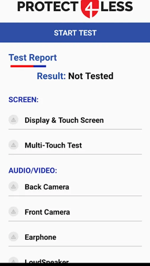 This app tests all the possible functionality of Android such as camera, internet, bluetooth, sound, screen, etc.