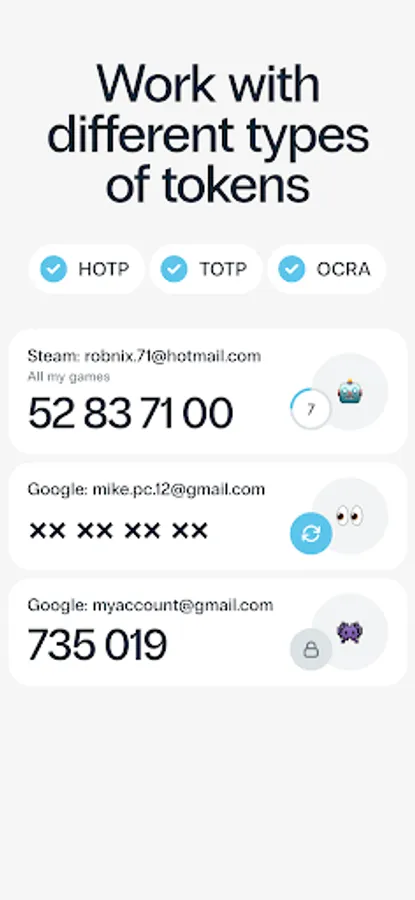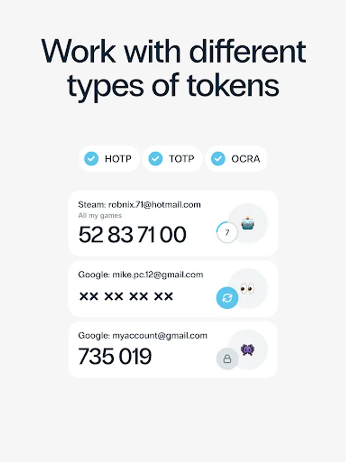 - The 2FA app is compatible with a wide range of websites and applications as it supports all OATH one-time password generation algorithms such as HOTP, TOTP, and OCRA.