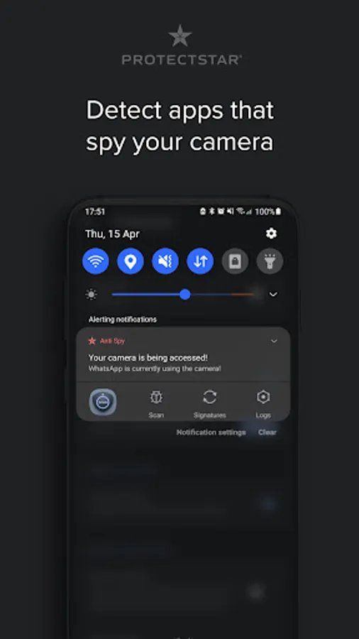 Hidden camera spying app detector feature offers the ideal combination of security solutions. This useful anti spy detector can detect any apps that may be using your camera or microphone without your permission and provide you with the option to disable or remove those spy apps. By using anti spy detector in conjunction with our Firewall AI, Camera Guard™, & Micro Guard™, maximum privacy for your device.