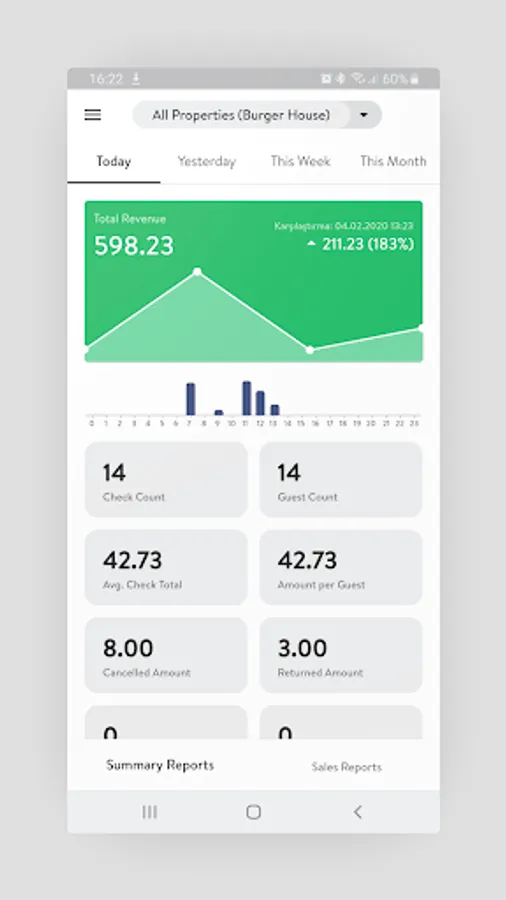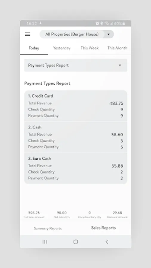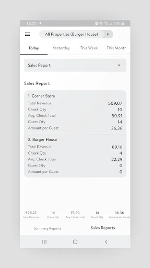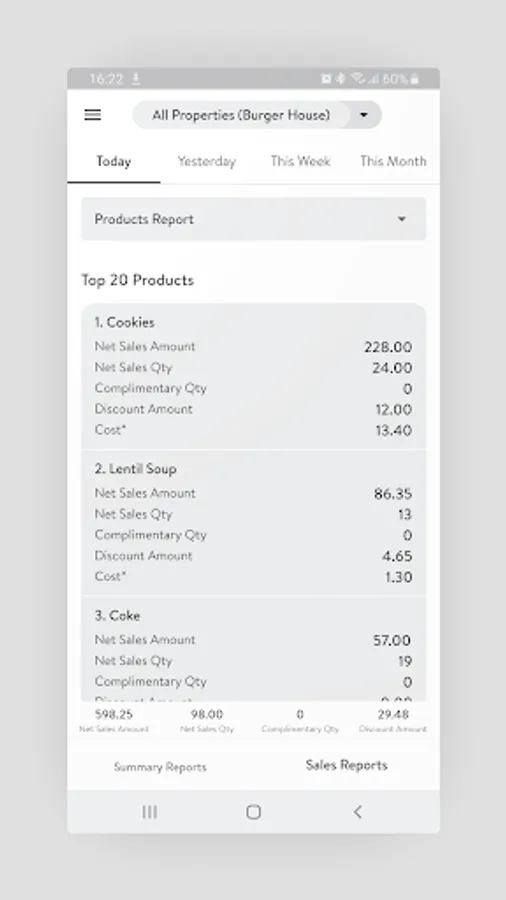 Get reports for the current day, the previous day, weekly and monthly sales with one click.