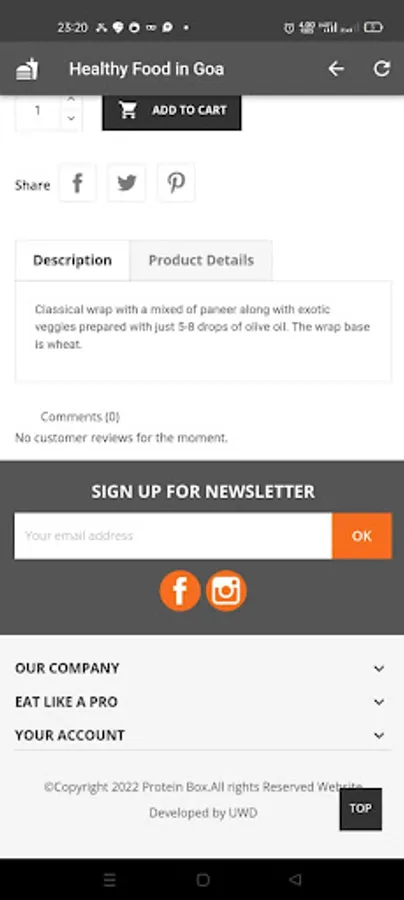The many benefits of eating healthy food is often ignored whilst importance is given to training and exercise alone. If a person wants to lose fat or build muscle, diet plays a major role in achieving this goal. Protein Box has a wide range of exciting healthy food choices which are not only tasty and fresh but also extremely nutritious. Some of the food choices include: Pre-workout and Post-workout Meals & Shakes, Cold Press Juices, Grill section, Healthy Brown Rice Lunch Boxes (vegetarian and non-vegetarian), Vegetarian and Non-vegetarian wraps, Oat meals, Salads, Keto, Vegan, Guilt free Biryanis, Low Carb Meals and lots of other healthy dishes to choose from. All meals are prepared fresh, using extra virgin olive oil only with no added colouring or preservatives.We specialise in low carb and high protein meals. You may opt for the vegetarian or non-vegetarian meal subscriptions which are ideally suited for students, corporate, fitness enthusiasts or anyone who has made healthy eating a part of their balanced lifestyle.
