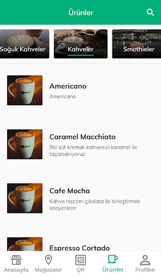 Under PRODUCTS tab, you can find all the flavors you will taste in Coffee’s stores and read the product details.