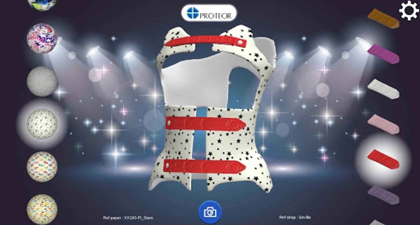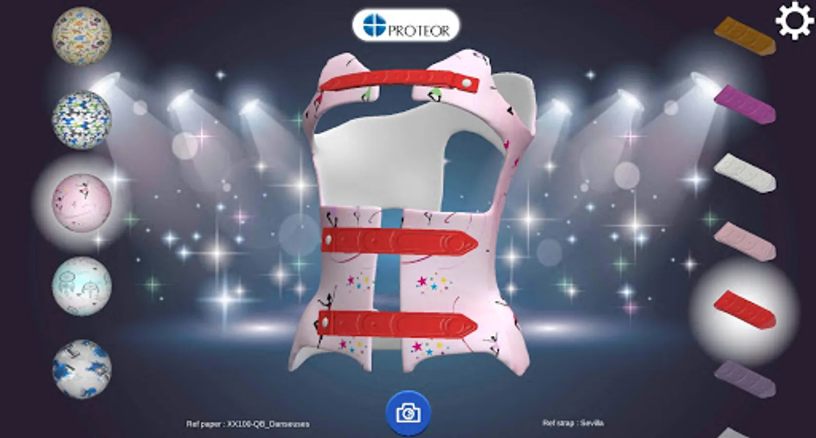 Proteor created this application to allow young people who are going to have a scoliosis corset to be able to choose their patterns and their straps in a fun way.