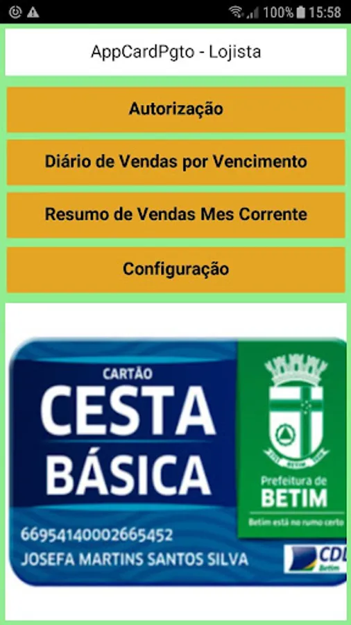 AppCardPgto is an application used to pay for purchases from the contracted vendor. Allows installment of the purchase value. Through analytical and synthetic consultations the supplier has a vision of his sales in a certain period.