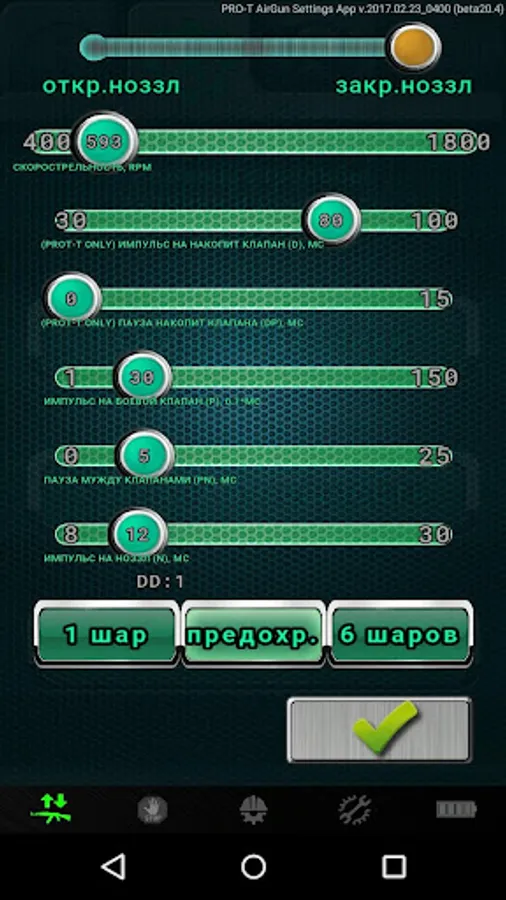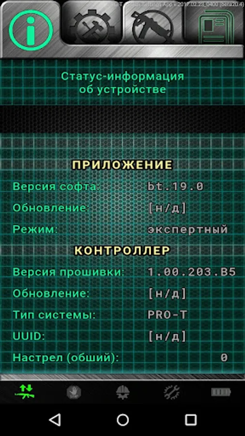PRO-T Gun App - allows you to change any system characteristics: Fire Rate, Power, firing modes, trigger sensitivity, etc.
