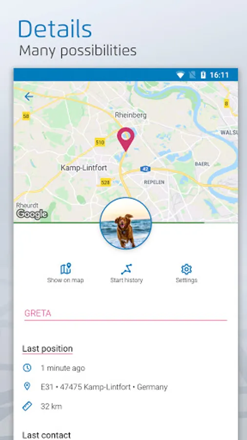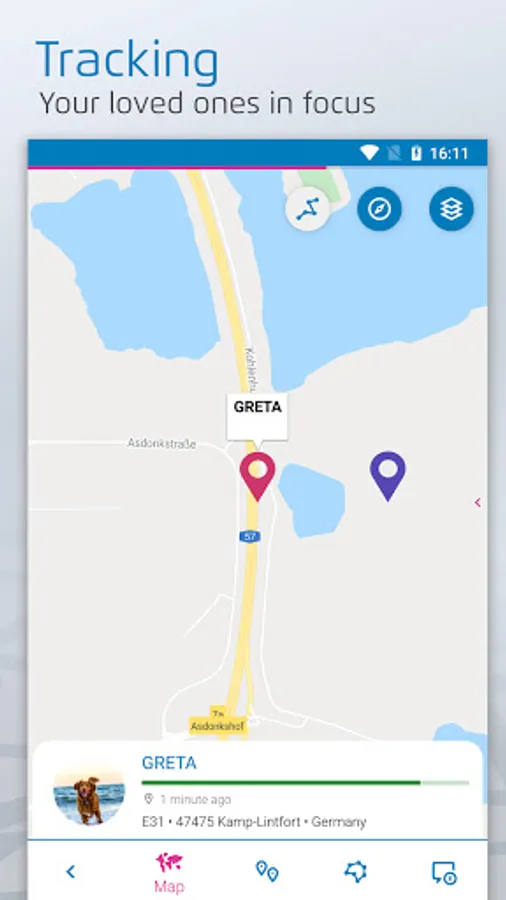 Together with our GPS trackers, this app offers reliable escort protection for people with special protection needs (children, seniors, extreme athletes, etc.) and also for securing valuables of all kinds, as well as for locating pets and farm animals.
