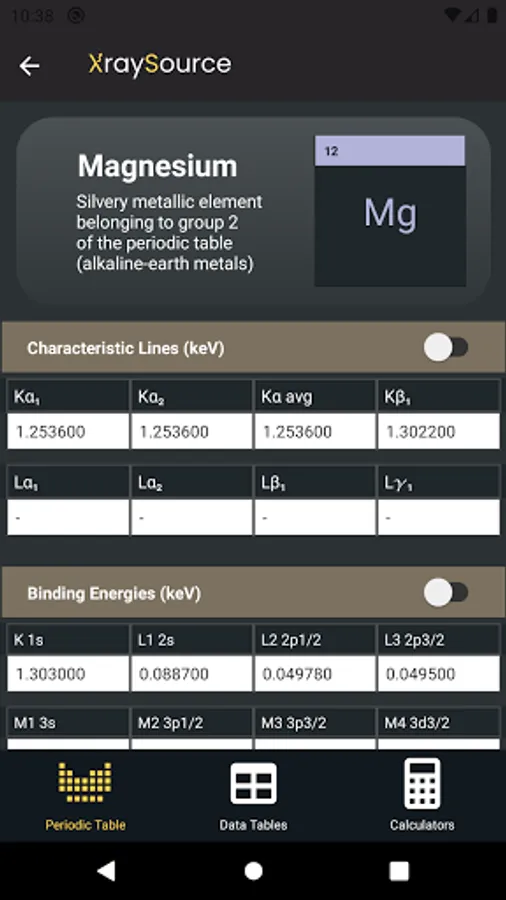 - A separate characteristic line lookup table, which allows the user to easily filter the entries by energy. Especially useful for XRF applications.