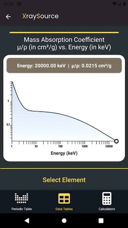 - Absorption tables: Mass-attenuation coefficients by element, as a function of photon energy as reported in the X-ray Data Booklet of the Lawrence Berkeley National Laboratory