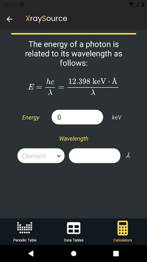 - An energy-wavelength converter, to easily convert photon wavelengths (both Angstroms and nanometers) into their corresponding energies and vice versa