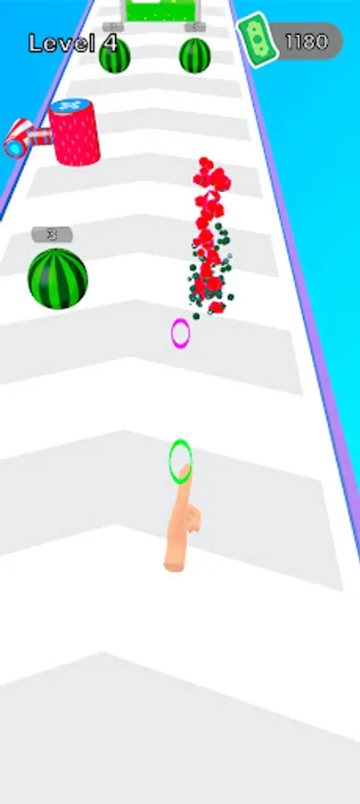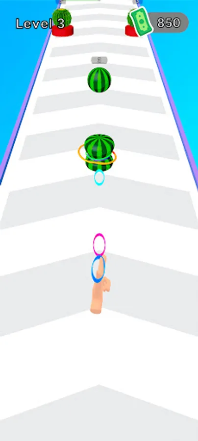 You control a hand that shoots colorful rubber bands! On the way you meet evil cacti and watermelons, which you need to squeeze and burst with the help of rubber bands!