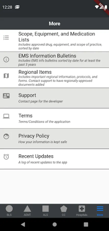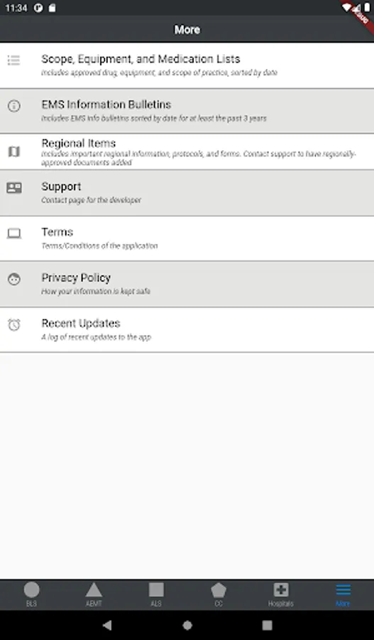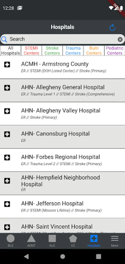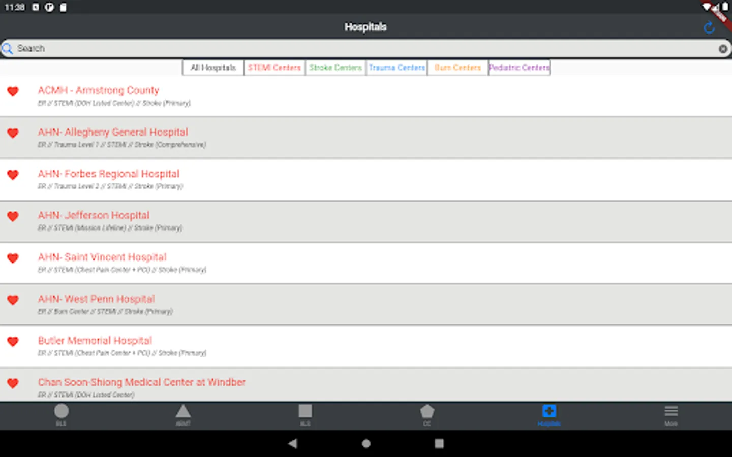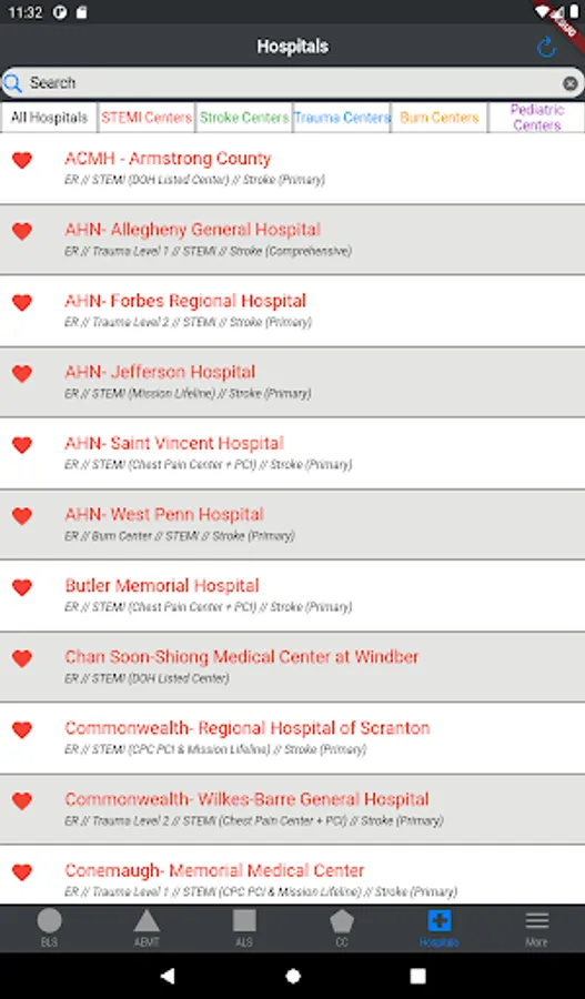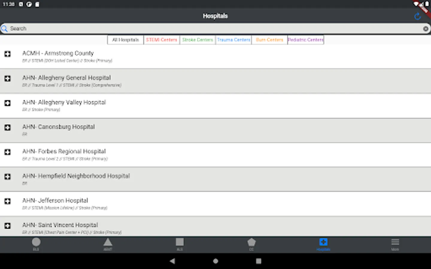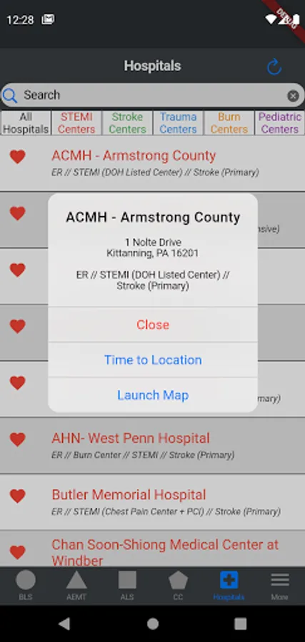 While every effort was made to ensure that the data contained is accurate and up-to-date, providers should be mindful to verify they are always operating in accordance with protocols published by the Commonwealth, regional guidance, and the providers respective scope of practice and certification levels. This app also features categorizing and filtering resources by whether or not they were a designated STEMI, stroke, trauma, burn, or pediatric center. Any corrections should be sent in to support immediately.
